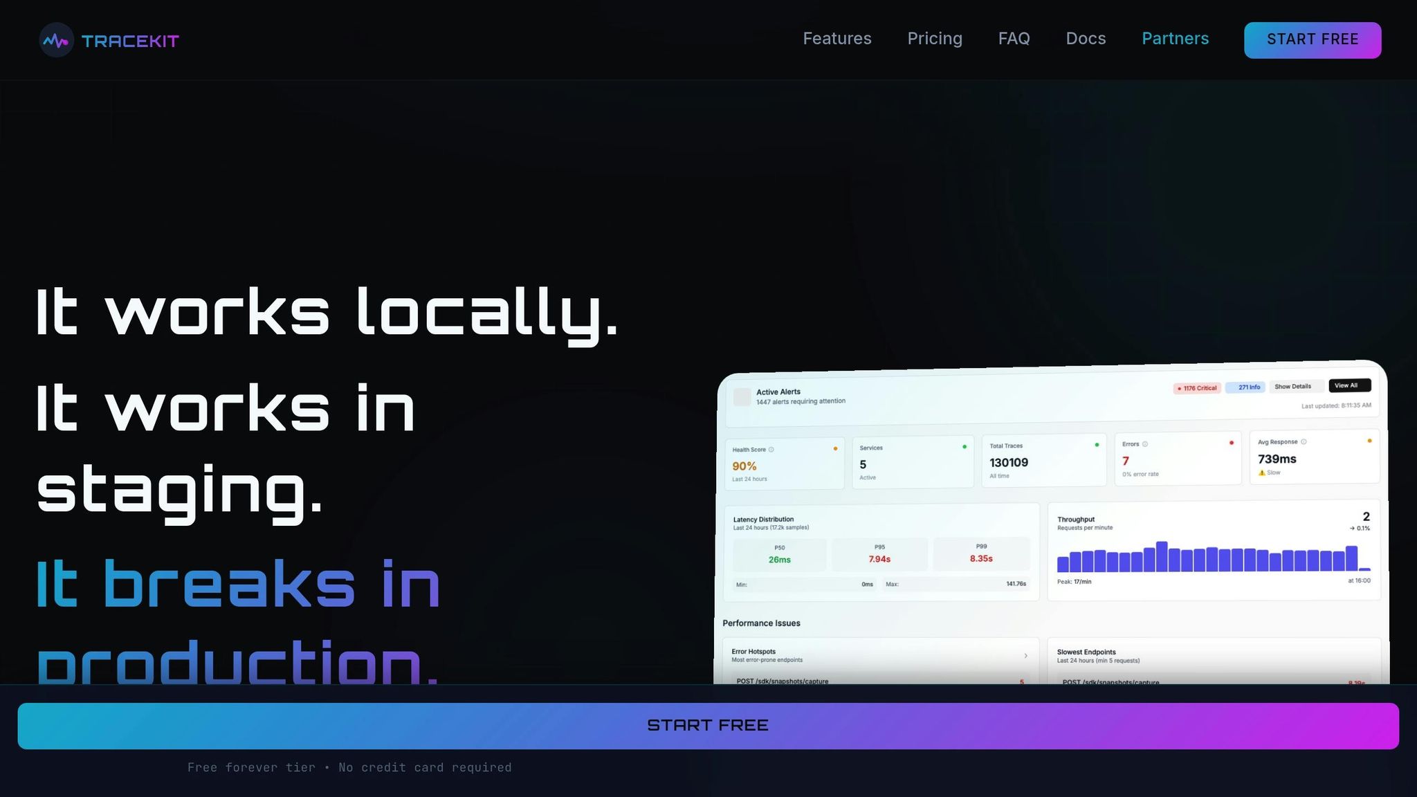 In January 2026, a fullstack developer successfully implemented TraceKit into a Flask app in under 15 minutes, gaining access to real-time traces for just $29/month[3]. The platform's performance impact is minimal, with an overhead of less than 5% in production[3]. This makes it ideal for small teams that need effective debugging tools without the burden of high costs or complex setups.